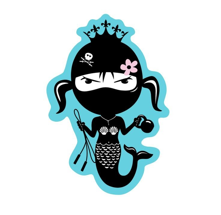 Judi Oyama (2018 SHOF Inductee) started BADASS SKATE MOM with her Ninja Mermaid logo holding a jump rope and a kettlebell. She runs a one person graphic design company called Maximum Impact Design creating award winning action sports graphic design projects.